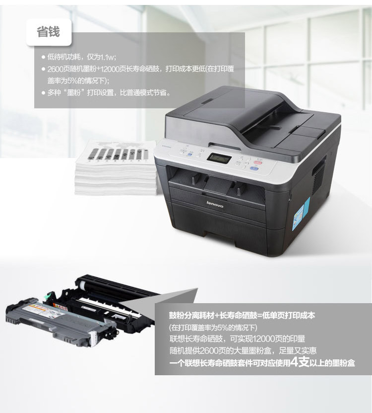 联想(Lenovo)至像M7615DNA 自动双面黑白激光打印机 打印复印一体机 有线网络 办公家用学习